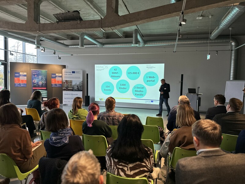 Die heutige Veranstaltung brachte Vertreterinnen und Vertreter polnischer und deutscher Institutionen zusammen, die sich für die Förderung der naturwissenschaftlich-technischen Bildung (STEM) bei Kindern und Jugendlichen engagieren. Im Rahmen des Treffens bot sich die Gelegenheit, Erfahrungen auszutauschen und inspirierende Bildungsinitiativen beiderseits der Grenze kennenzulernen. Zu den Vortragenden gehörten unter anderem Vertreterinnen und Vertreter der Technischen Universität Dresden, des Łukasiewicz - PORT Forschungszentrums in Wrocław, des Deutschen Zentrums für Astrophysik (DZA) sowie des Witelon-Zentrums in Legnica. Ihre Beiträge behandelten Themen wie neue Methoden der Wissensvermittlung, den Aufbau von Zukunftskompetenzen und die Bedeutung grenzübergreifender Kooperationen für die Entwicklung der STEM-Bildung.