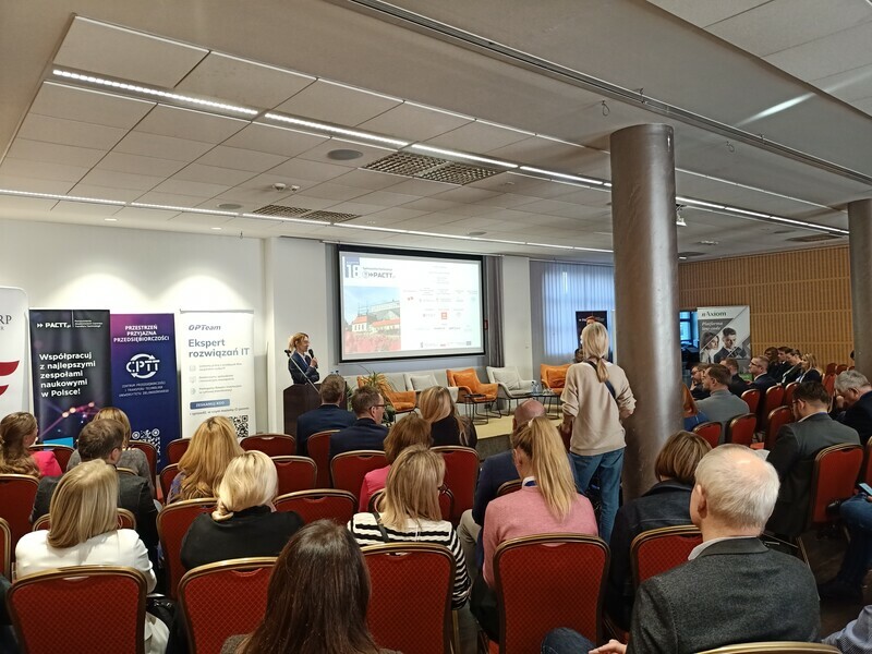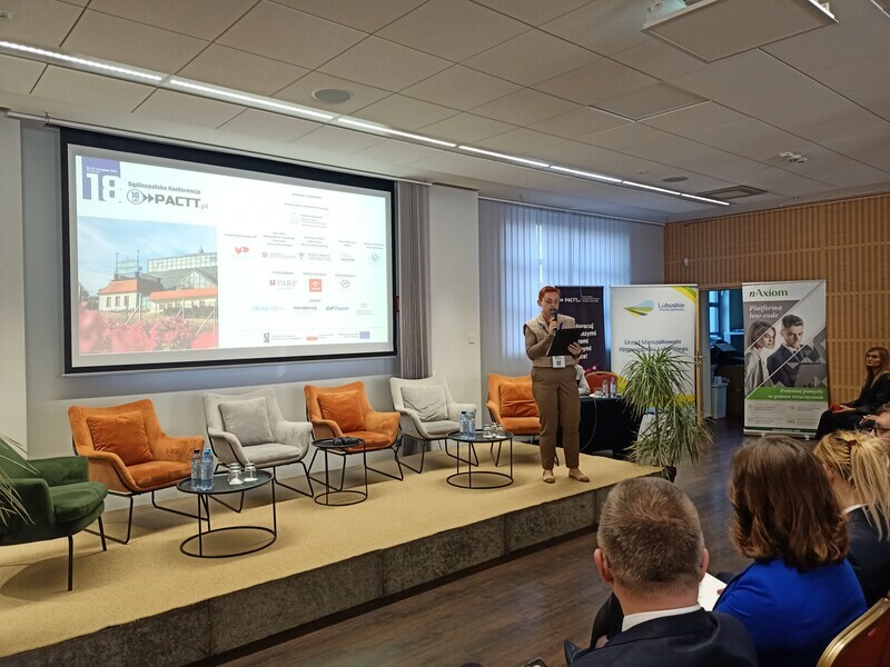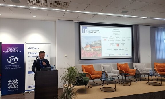 Spotkanie było także okazją do podsumowań oraz rozmów na temat przyszłości PACTT. Jedną z uczestniczek konferencji była dr inż. Gabriela Konopka-Cupiał, dyrektorka Centrum Transferu Technologii CITTRU Uniwersytetu Jagiellońskiego, która mówiła o planach PACTT na przyszłość: - Jestem osobą, która w 2015 roku wspólnie z pięciorgiem innych kolegów i koleżanek założyła organizację, która dzisiaj obchodzi 10-lecie istnienia – czyli Porozumienie Akademickich Centrów Transferu Technologii. Panel, w którym uczestniczyłam poruszał wątki historyczne, a przede wszystkim to na czym nam zależy w środowisku transferu: gdzie widzimy możliwości rozwoju, czego oczekujemy od niego, co się będzie działo w zakresie współpracy nauki z biznesem itd. Zadajemy sobie pytanie: Jak chcemy rozwijać nasze kompetencje i co możemy przynieść jeszcze środowisku naukowemu i biznesowemu? To jak będzie wyglądać ten transfer w przyszłości zależy przede wszystkim od bardzo silnej współpracy nie tylko sektora nauki i biznesu, ale jednocześnie podmiotów, które korzystają z tego co my wypracujemy. Dla mnie przyszłością jest współpraca – czyli wytwarzanie innowacji nie tylko na styku nauki i biznesu ale również z użytkownikiem, z osobami z otoczenia oraz z podmiotami, które stanowią prawo. Tylko gdy razem pracujemy nad wytworzeniem jakiegoś produktu i usługi, tylko wtedy mamy szansę żeby realnie go wprowadzić, w taki sposób by spełniał oczekiwania tych podmiotów i osób, które będą z niego korzystać. Wytwarzanie innowacji wspólnie z użytkownikami, podmiotami stanowiącymi prawo również z poszanowaniem środowiska, to jest ta przyszłość, w której ja widzę nas i nasze działania.